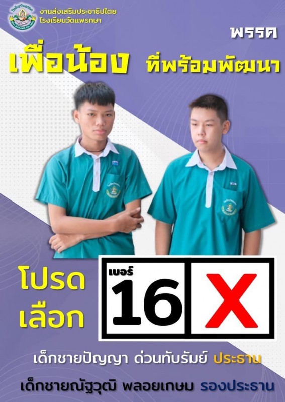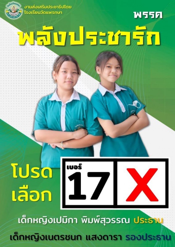 รายชื่อผู้ลงสมัครประธานนักเรียน สมาชิกสภานักเรียนโรงเรียนวัดแพรกษา ปีการศึกษา 2566 ทั้ง 22 พรรค ขอเชิญคณะผู้บริหาร คณะครู และนักเรียนวัดแพรกษามาใช้สิทธิเลือกตั้งวันศุกร์ที่ 16 มิถุนายน 2566