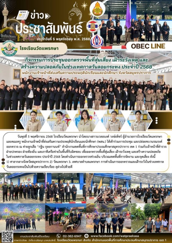 กิจกรรมการประชุมออกตรวจพื้นที่สุ่มเสี่ยง เฝ้าระวังเหตุ และสร้างความปลอดภัยเทศกาลวันลอยกระทง ปีการศึกษา 2568