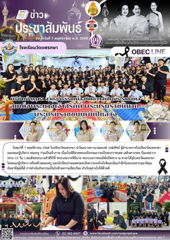 พิธีบำเพ็ญกุศล สวดอภิธรรมเพื่ออุทิศถวายพระราชกุศล สมเด็จพระนางเจ้าสิริกิติ์ พระบรมราชินีนาถ พระบรมราชชนนีพันปีหลวง